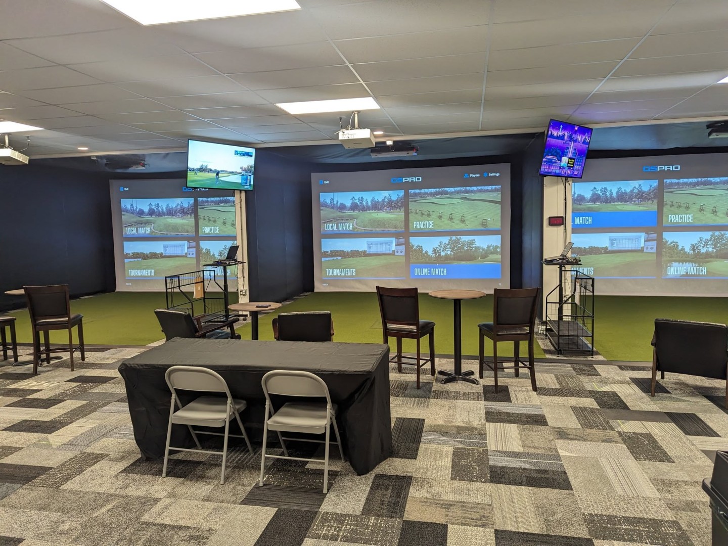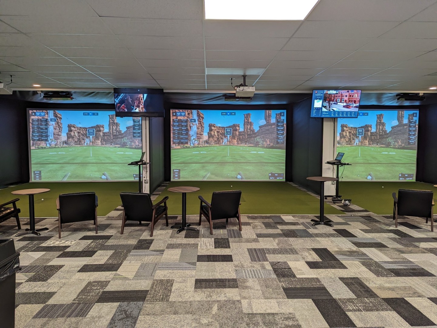 During the winter months (November 15–April 15), our team is on-site to assist with simulator setup and serve alcohol. Tee times can be scheduled online or by phone during staffed hours.