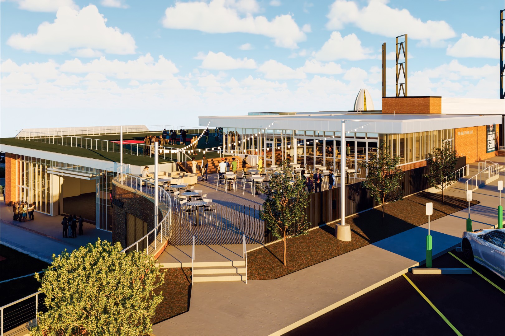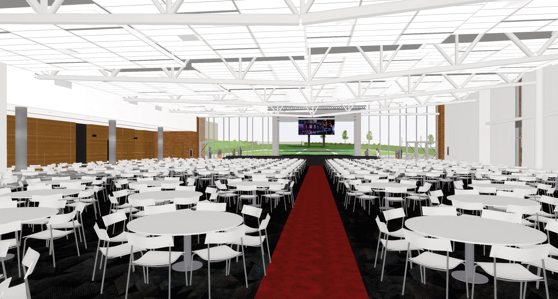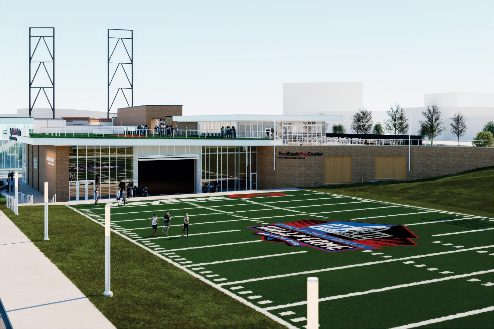 The new KeyBank Center at the Pro Football Hall of Fame will be the largest venue of its kind in the area. Event center space on the first level will total nearly 12,000 square feet and feature an integrated 27-foot-wide glass system that opens to the adjacent field turf area, full kitchen capabilities, and a rooftop terrace. The second level will include a café, VIP Club and turf rooftop space for parties or other events.