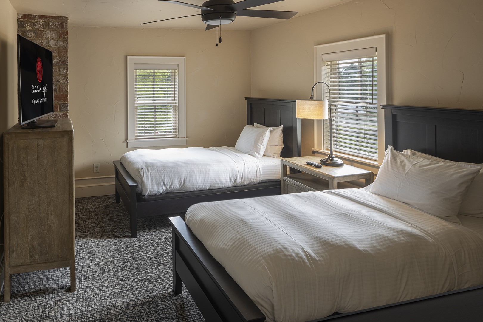 The Farmhouse at Gervasi Vineyard offers a warm, welcoming escape where simple luxury feels effortlessly like home. This beautifully restored 1830s residence invites guests to stay in a piece of living history, enveloped in charm and comfort. With four bedrooms, two bathrooms, and generous shared spaces for dining, lounging, and conversation, the home is designed for togetherness—perfect for families, friends, or small gatherings seeking a private retreat.