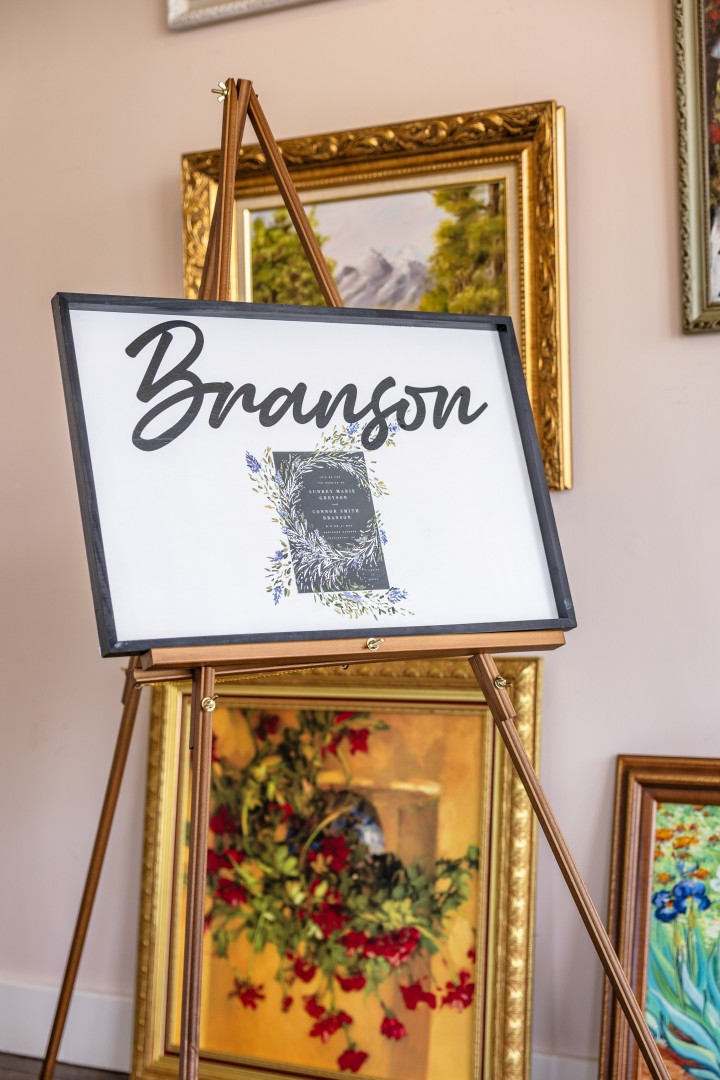 U Painting is made just for U…the bride and groom! We use the paper good of a wedding invitation to make it the focal point of a custom, hand painted work of art, complete with the newly weds last name and some gorgeous painted flourishes all around. These custom keepsakes are made with the intention of being on display at the wedding reception and then later on, hung permanently on the wall at home.