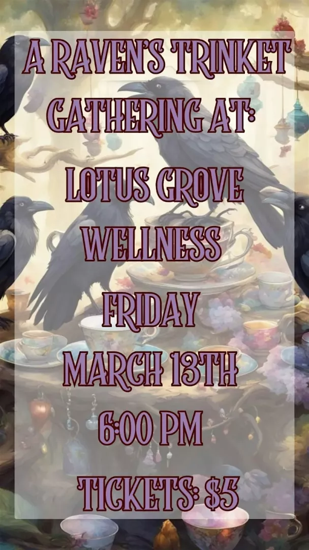 Join The Raven’s Cup for an evening of shiny things, shared magic, and a little playful mischief. Bring 2-5 trinkets you’re ready to trade — curious objects, forgotten favorites, tiny oddities that deserve a new story.