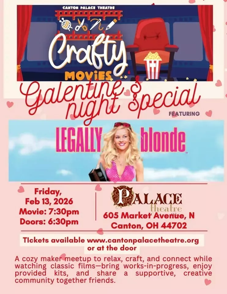Join us for Crafty Movies — a special movie-going experience where we turn the historic Canton Palace Theatre into a cozy, creative community hub.
