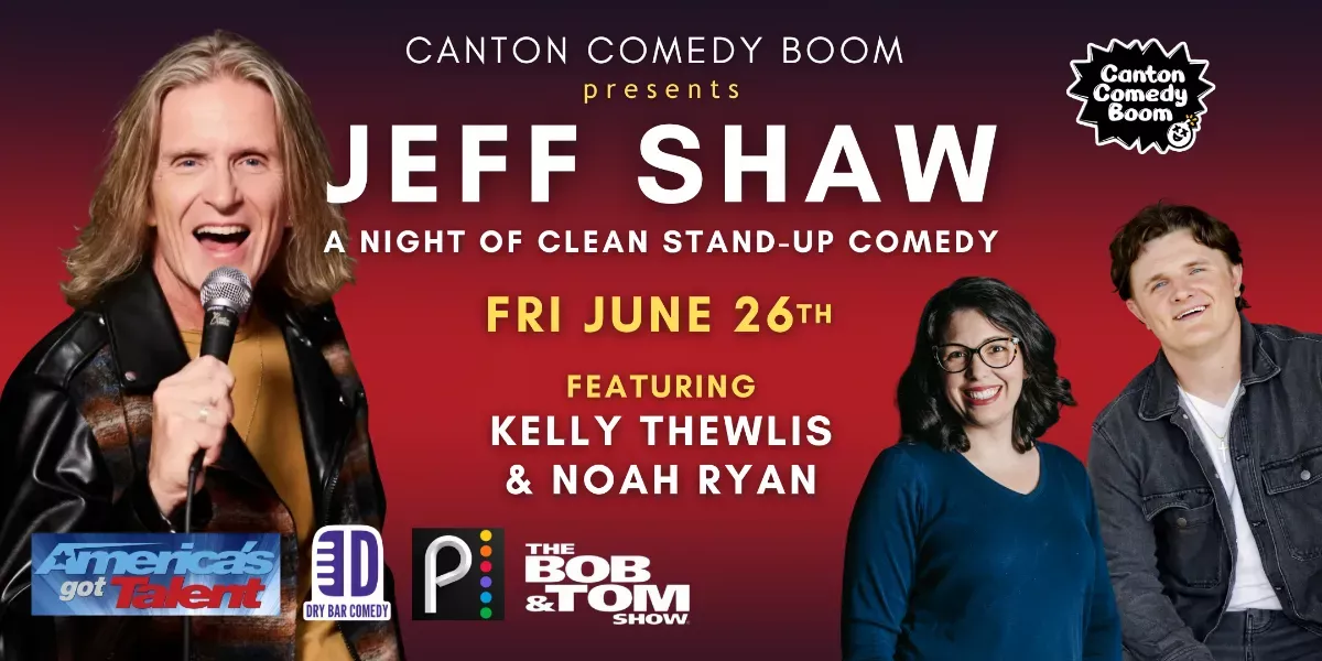 Join Canton Comedy Boom on Friday, June 26th for a night of hilarious, clean stand-up comedy with headliner, Jeff Shaw!