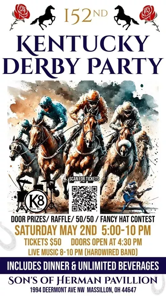 K8 Event Team is excited to announce our 1st Annual Kentucky Derby Party Fundraising Event on Saturday, May 2nd. Tickets are $50 and includes dinner (provided by The Nook/Up In Smoke) as well as unlimited beverages during the event (Beer/ Seltzer/ Pop/ Water). Please click the link below to purchase. Limited to 125 people so act fast!