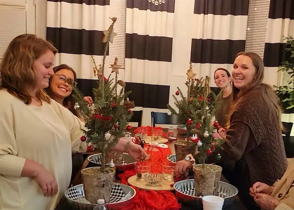 Tabletop Tree decorating with Boomdyada @ The Dragonfly Winery.