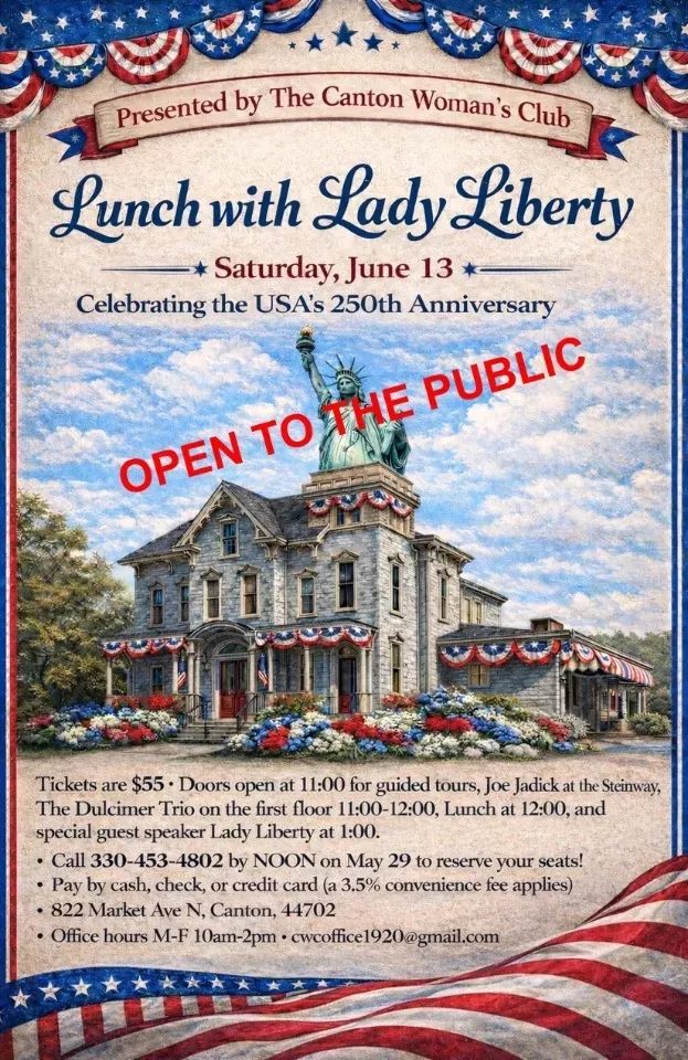 The Canton Woman's Club is celebrating the USA's 250th Birthday with a gala, "Lunch with Lady Liberty!"
