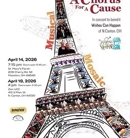 A Chorus for a Cause is preparing to travel to France to present this program in several locations there. Come join us for a preview of the program that celebrates the 250th Anniversary of our country as well as other inspirational and well-loved songs. This concert is free, but donations are gratefully accepted with a portion of all donations going to benefit Wishes Can Happen of North Canton.