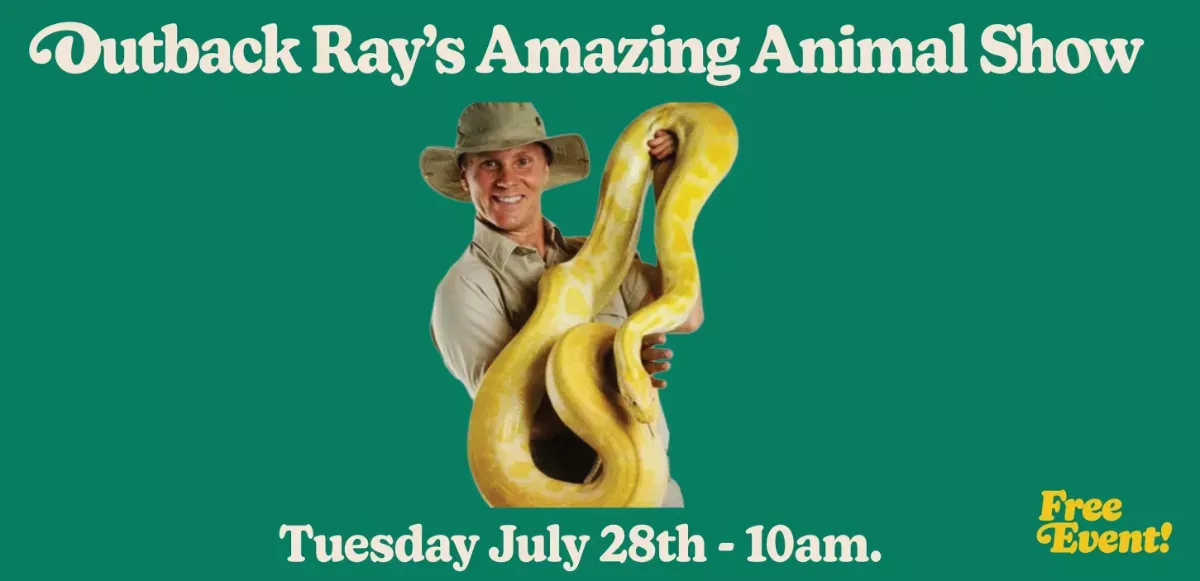 Outback Ray brings the wild to life with an unforgettable, hands-on animal experience for all ages. Known for his high-energy presentations and deep respect for wildlife, Ray introduces audiences to incredible animals from around the world while teaching the importance of conservation, safety, and understanding nature. From fascinating facts to up-close encounters, Outback Ray’s Animal Show is equal parts education, entertainment, and awe—leaving crowds inspired, informed, and a little more wild than when they arrived.