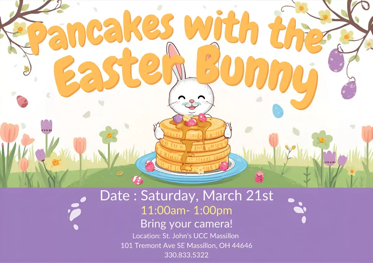 Enjoy a free pancake breakfast with the Easter Bunny. Bring your camera to take pictures!