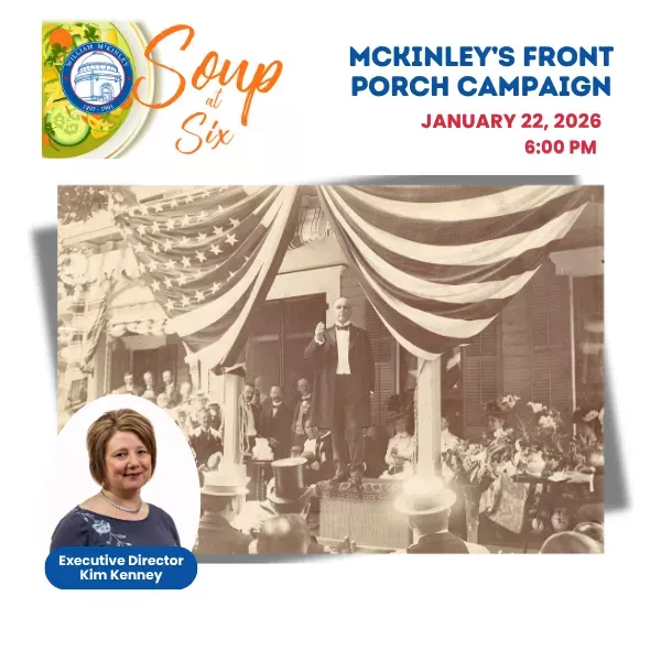 Join Executive Director Kim Kenney for an in-depth look at how William McKinley’s Front Porch Campaign led to his White House victory. McKinley knew he could not compete with William Jennings Bryan, who was a brilliant orator, so he decided to campaign “from home.” Learn more about the inner workings of this well-oiled machine.