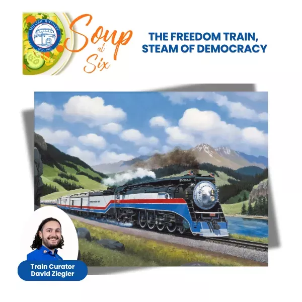 Join Train Curator, David Ziegler, as we learn the story of Ross Rowland Jr. and his precious freight. Together we will cover the 1946 and 1976 freedom trains that acted as traveling museums with twenty six galleries curated from all over the United States. Some American treasures aboard were a moon rock, the Louisiana purchase, and Jesse Owen’s gold medals among hundreds more that travelled 26,000 miles with 138 stops.