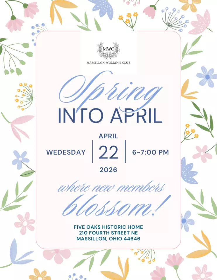 The Massillon Woman's Club is cordially inviting you to join our organization. Stop by on April 22nd to meet members of the Massillon Woman's Club and view our beautiful home and the many opportunities for you to share with other members. Get involved today!