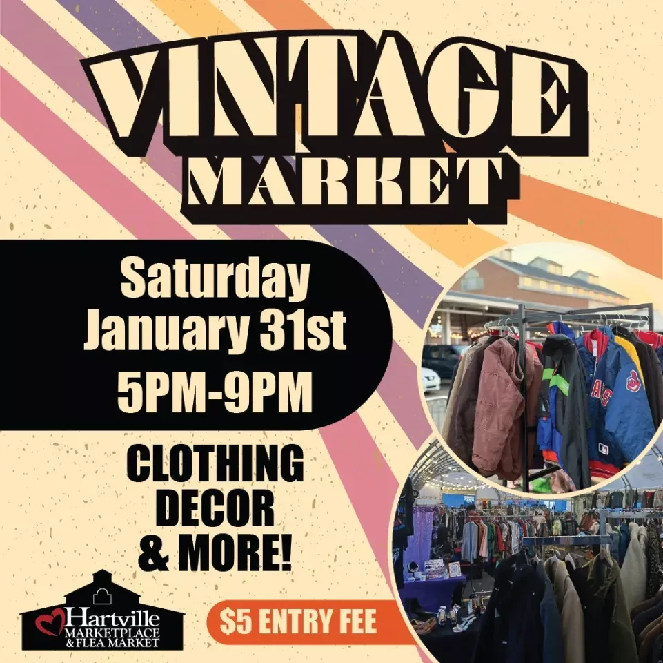 Vintage Market at the Hartville MarketPlace & Flea Market features a thoughtfully curated collection of retro apparel, accessories, and one-of-a-kind fashion finds spanning multiple eras. Join us for an evening of exploring a diverse range of styles while soaking in the MarketPlace’s vibrant, community-driven atmosphere. Whether you’re a dedicated treasure hunter, a trend enthusiast, or simply love timeless fashion, this event offers something special for everyone.