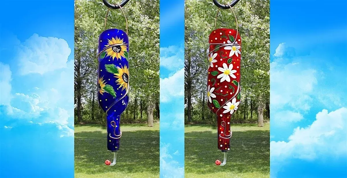 Join us to create YOUR CHOICE of ONE wine bottle hummingbird feeder. Makes a great Mother’s Day gift.